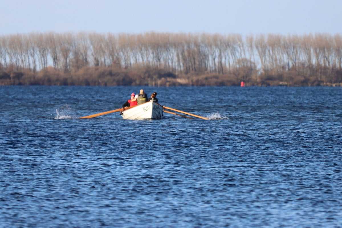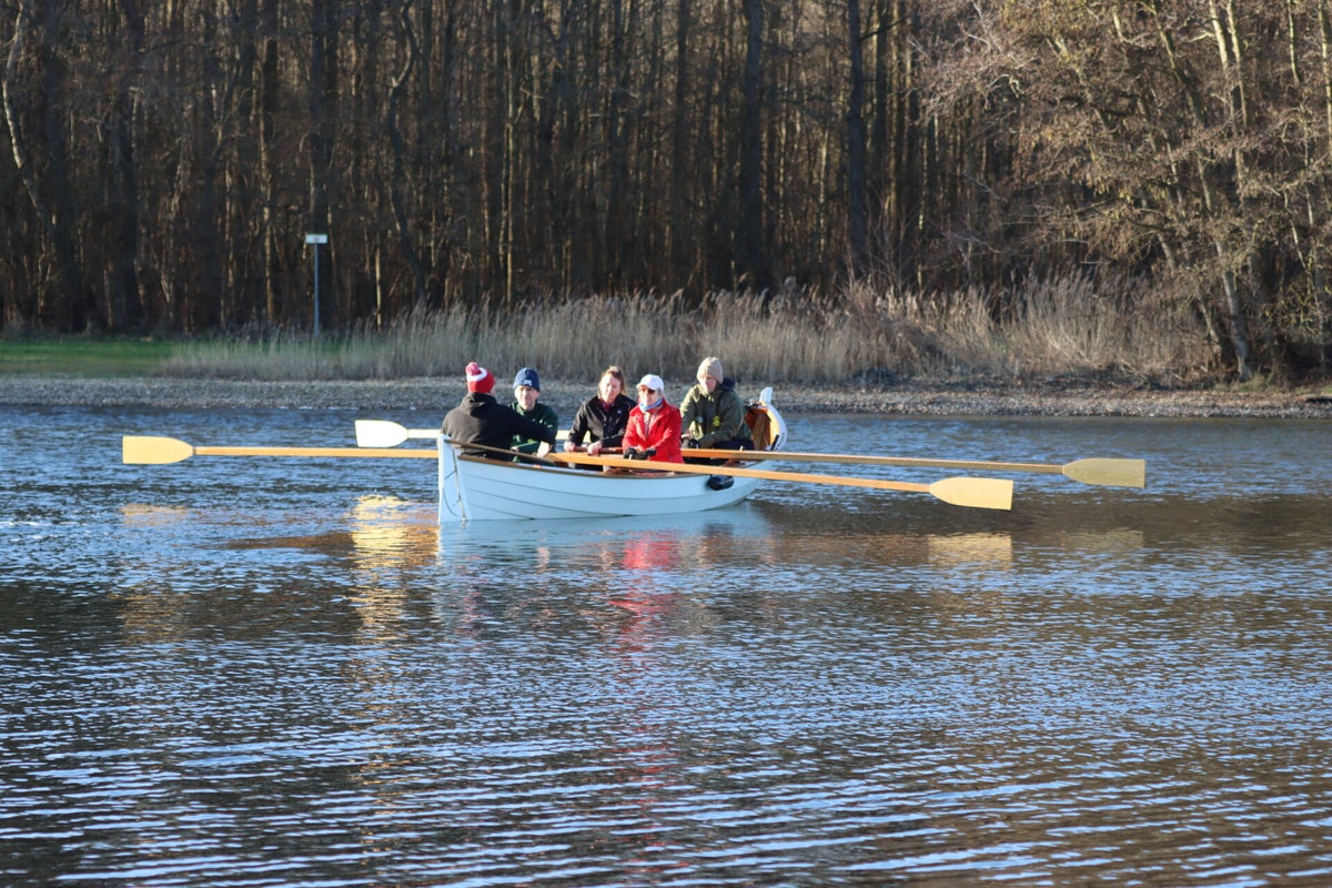 Nog geen 3 weken na onze doorstart maakten we vandaag de eerste roeislagen in onze St Ayles Skiff! Met grote dank aan Stefan Alderhout van de DARA. Hij had aangeboden om naar Zeeland te komen voor de nodige instructie en uitleg, helemaal top! We verzamelden ons op deze zonnige (maar koude) dag rond 9:30 uur bij haven De Piet (Veerse Meer), waar we na uitleg over de boot de 'NL017' te water lieten. Vervolgens met wisselende bemanning samenstellingen onze eerste heerlijke drie rondjes gemaakt, en voor de NL017 de eerste meters in het zoute water van Zeeland na een lange pauze in Den Helder! Het was even wennen aan de andere zitpositie en slag, maar iedereen had dit snel onder de knie. Dit smaakt naar meer! Na een paar uurtjes werd het tijd om weer de warmte op te gaan zoeken.... Nogmaals dank aan Stefan, ook voor de tips voor diverse verbeterpunten aan de boot, we gaan ermee aan de slag!