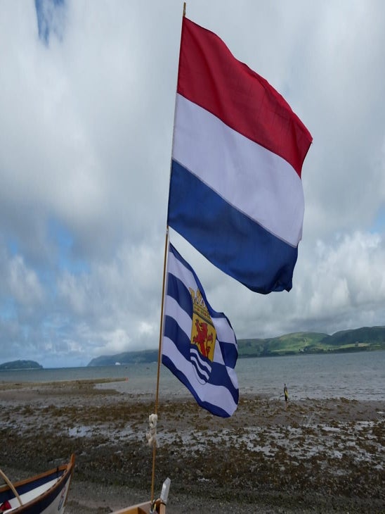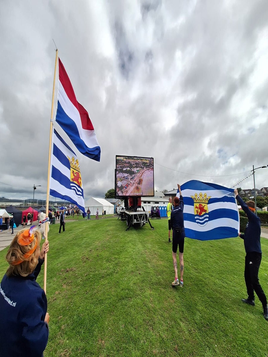 Alle teams krijgen een nationale vlag van de organisatie, en wij voegen daar een losse XXL Zeeuwse vlag aan toe. Toch zien de meeste voorbijgangers niet meteen waar we vandaan komen: ze denken dat we uit Schotland komen en vragen wat de rode 'Scottish Lion' * op de Zeeuwse vlag doet, of ze denken dat we uit Nieuw-Zeeland komen. Erg vriendelijke reacties, en een gemoedelijke sfeer!