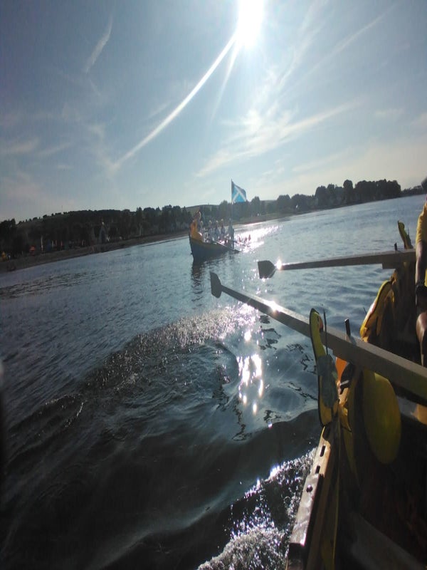 We hebben de laatste tijd erg naar deze race toegeleefd, hebben als team deze week samen een aantal barrières overwonnen, snel en veel nieuwe ervaringen opgedaan en komen nu op het punt dat we elkaar optimaal kunnen ondersteunen voor deze race! We gaan deze race in met vol vertrouwen in elkaar! Nadat we de Sealainn te water laten, roeien we richting het gebied waar de skiffs verzamelen voordat ze naar de startlijn worden geroepen. We besluiten niets meer te oefenen, maar te concentreren op onze eigen taken in de race. Het wordt steeds stiller in onze boot, de spanning stijgt...