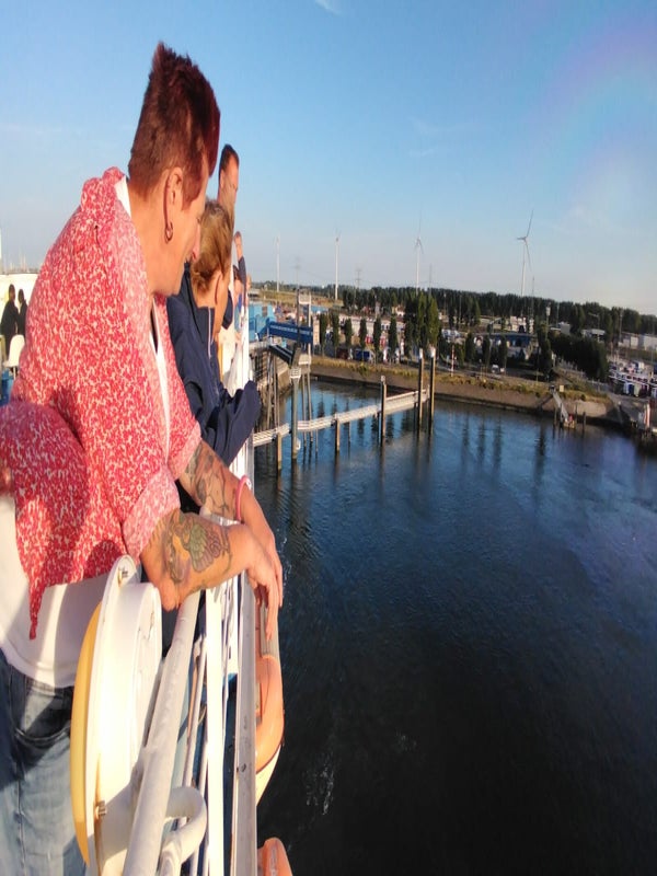 We hebben vooraf gekozen om vandaag terug te reizen en niet pas morgen, want dan zijn we zondagochtend weer lekker thuis bij onze partners en families! We rijden met drie tussenstops voor koffie, een picknick en een ijsje (het is zomers warm in Engeland vandaag) in 7,5 uur naar de Pride of Hull, het schip dat ons naar Rotterdam terugvaart. Op het achterdek in het zonnetje kijken we naar het inschepen van alle vrachtwagens, campers en motoren. In het zonnetje genieten we weer eens na van deze fantastische reis en de mooie prestaties die ieder van ons geleverd heeft. We maken samen de wijnfles leeg die we meegenomen hebben en duiken onze nestjes in.
