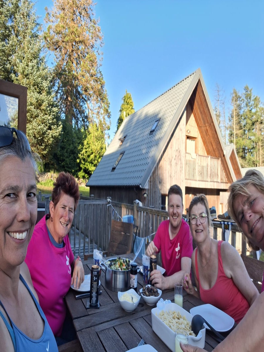 In ons huisje genieten we van de bloemkool pesto schotel van Caroline en Yet en komen weer op kracht. We hebben nu erg veel zin in onze races, maar morgen eerst nog een tweede en laatste trainingsdag tijdens de traditionele 'Daft Duck Day!'