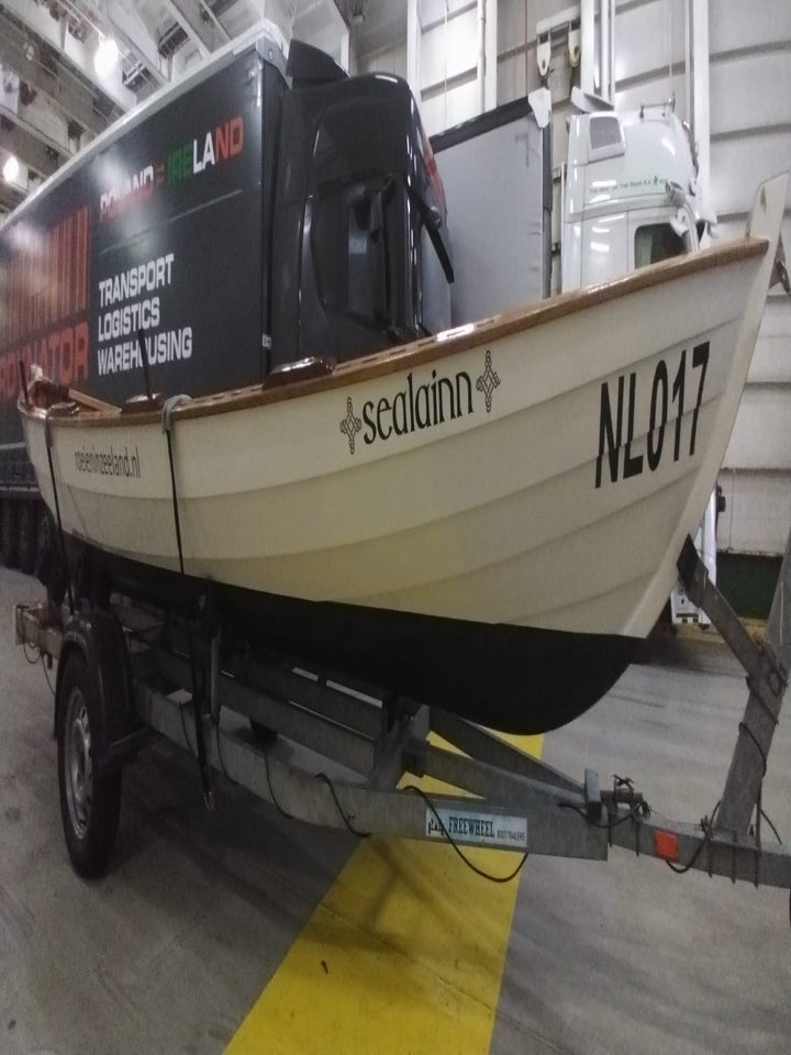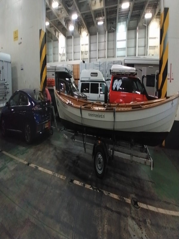 Het is tijd om de Sealainn met ons mee naar Zeeland te nemen. Met hulp van twee andere Nederlandse teams tillen we de Sealainn op een trolley en vervolgens op de trailer.