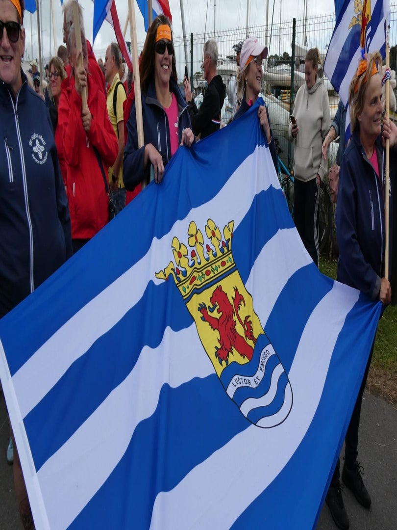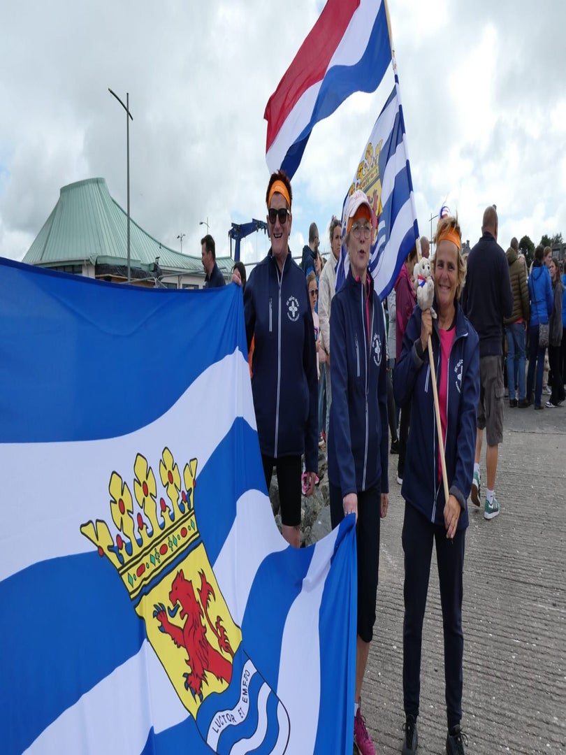 In onze teamkleding (roze westrijdshirts en donkerblauwe jasjes) oranje hoofdband (met 'op z'n mooist' erop), een kek oranje hoedje voor Yet en een rood/wit/blauw strik voor Felix zijn we er klaar voor. Yet en Felix paraderen over de boulevard met de Nederlandse en Zeeuwse vlag naar de briefing en trekken al veel bekijks: vele mensen stoppen ons en willen een foto van ons maken!