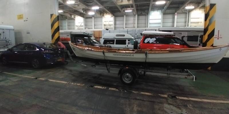 Na een goede nachtrust en een heerlijk groepsontbijt kunnen we er tegenaan. Zo enthousiast, dat al heel snel de auto met de Sealainn een extra rondje over de rotonde moet doen om de volgauto aan te kunnen laten haken.