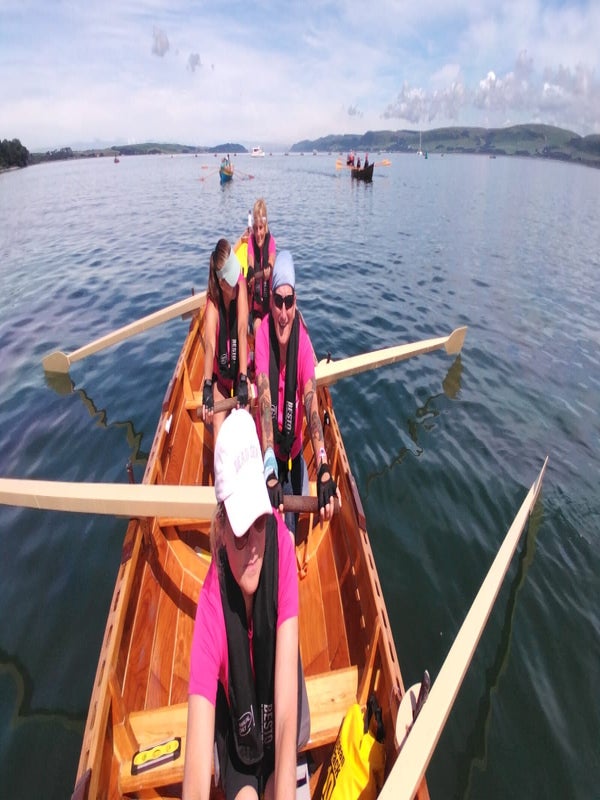 Eén van hun vaste roeiers moet vanmiddag de ferry naar huis halen en kan niet meedoen als het team in de finale terecht zou komen. Om te voorkomen dat ze dan plots zonder roeier zitten, willen ze voor de heat al een vervanger hebben. Dit familieteam (neven, nichten, vaders, dochters, moeders en zonen) heeft vaker medailles in WK-finales gewonnen. Een aantal van de op het strand spelende kleine kinderen zaten nog in de buik van hun moeders toen zij op de SkiffieWorlds in 2016 goud en in 2019 zilver wonnen. Oeps, dit is dus een serieus presterend team, de verwachtingen liggen plotseling heel hoog! Maar de sfeer is goed en al grappenmakend krijgt Felix toestemming van zijn 'vier moeders' om mee te racen met dit vriendelijke en open team, dat ons allerlei tips geeft over roeien tijdens WK-wedstrijden.