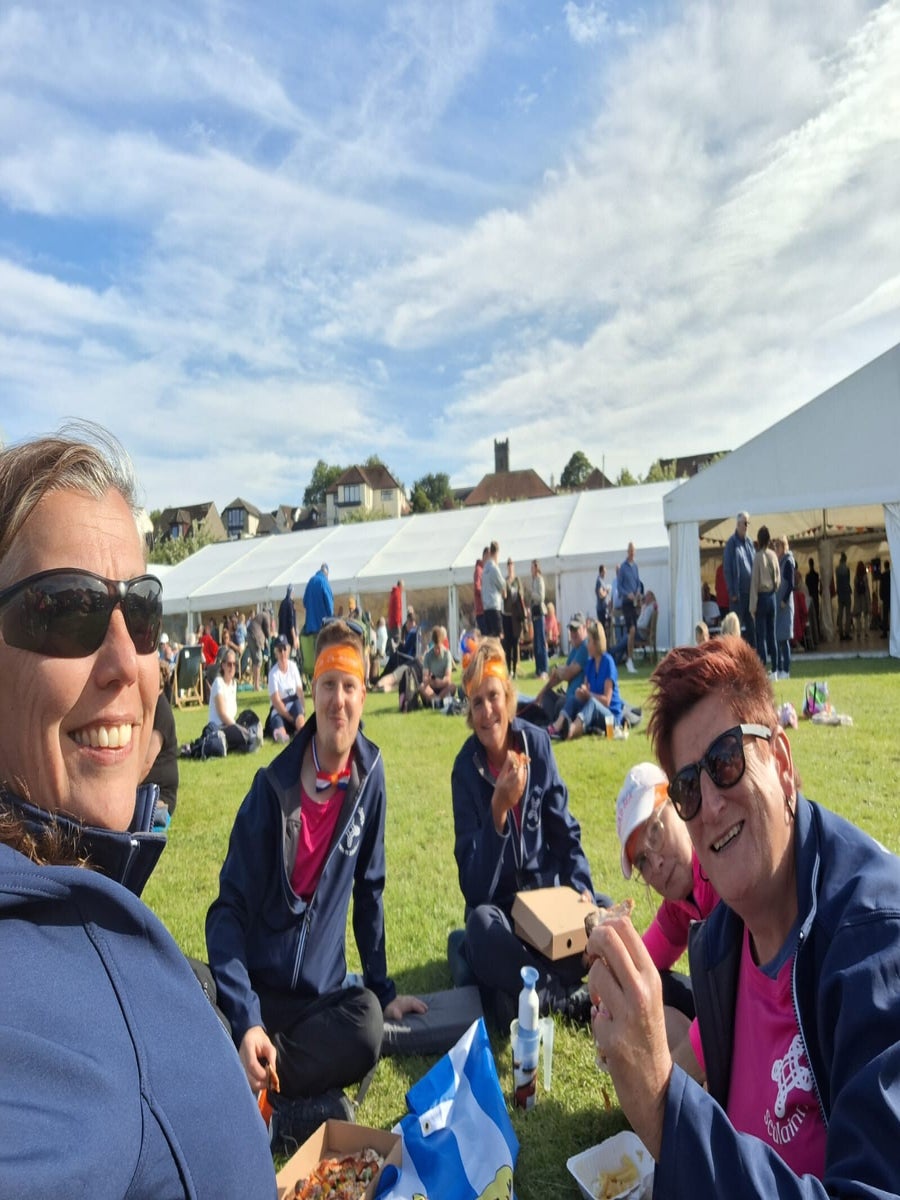 Helemaal voldaan met de topdag is het tijd voor een bezoek aan de biertent en de foodtrucks. Gezellige drukte in het zonnetje! We kijken uit naar ons wedstrijdprogramma en kunnen niet wachten op onze eerste roeislagen in Schotse wateren!
