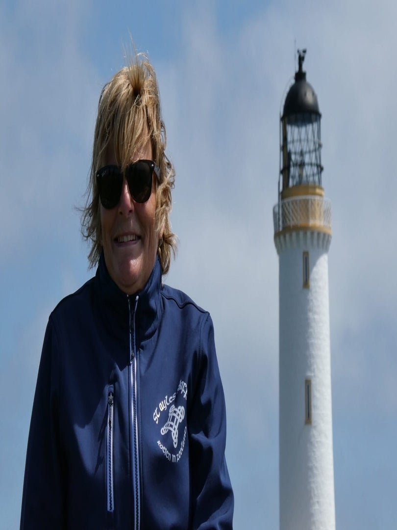 Bij de vuurtoren komen we allerlei St Ayles Skiff teams uit Schotland, Nederland en Amerika tegen - de vuurtoren doet goede zaken vandaag! De kaartjesverkoper noemt het weer van vandaag "just a gentle breeze" - dat terwijl de vouwen uit je broek waaien! We genieten van het uitzicht bovenop de vuurtoren en de uitleg over de LED-lamp, verdienen een 'certificate of achievement' voor het beklimmen van de toren en bekijken beneden de drie dieselaangedreven luchtcompressoren die de lucht produceren voor de misthoorn.