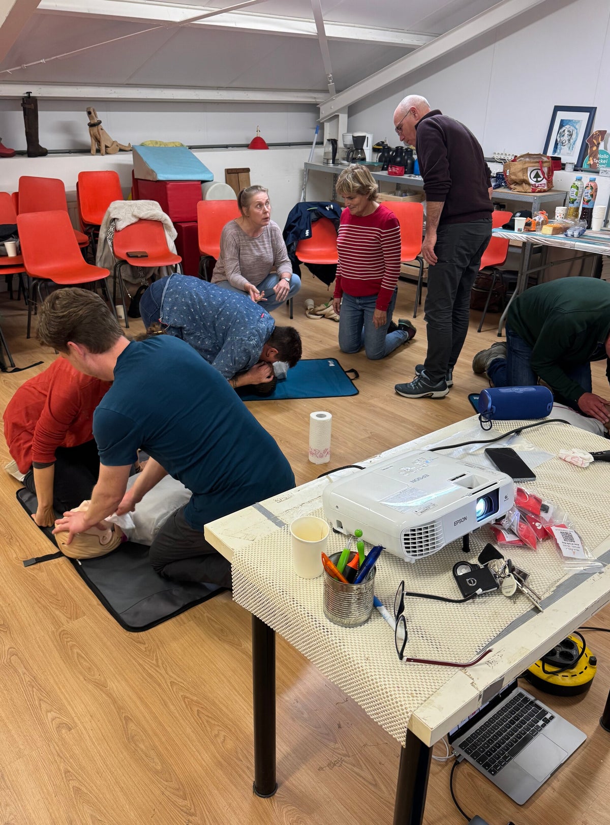 Afgelopen zaterdag organiseerden we voor onze club een cursus reanimatie & EHBO, gegeven door Leon Goedegebure van Firstaid-Training & Support. We kenden Leon al van de Veilig Roeien veiligheidsvideo's waar we vorig jaar aan hebben meegewerkt, en hij maakte een middagvullende maatwerktraining voor ons, top! Met 11 gecertificeerde Basic Life Support Hulpverleners extra beschikt onze club nu over heel veel mensen die weten wat ze moeten doen bij een onverhoopte medische situatie!