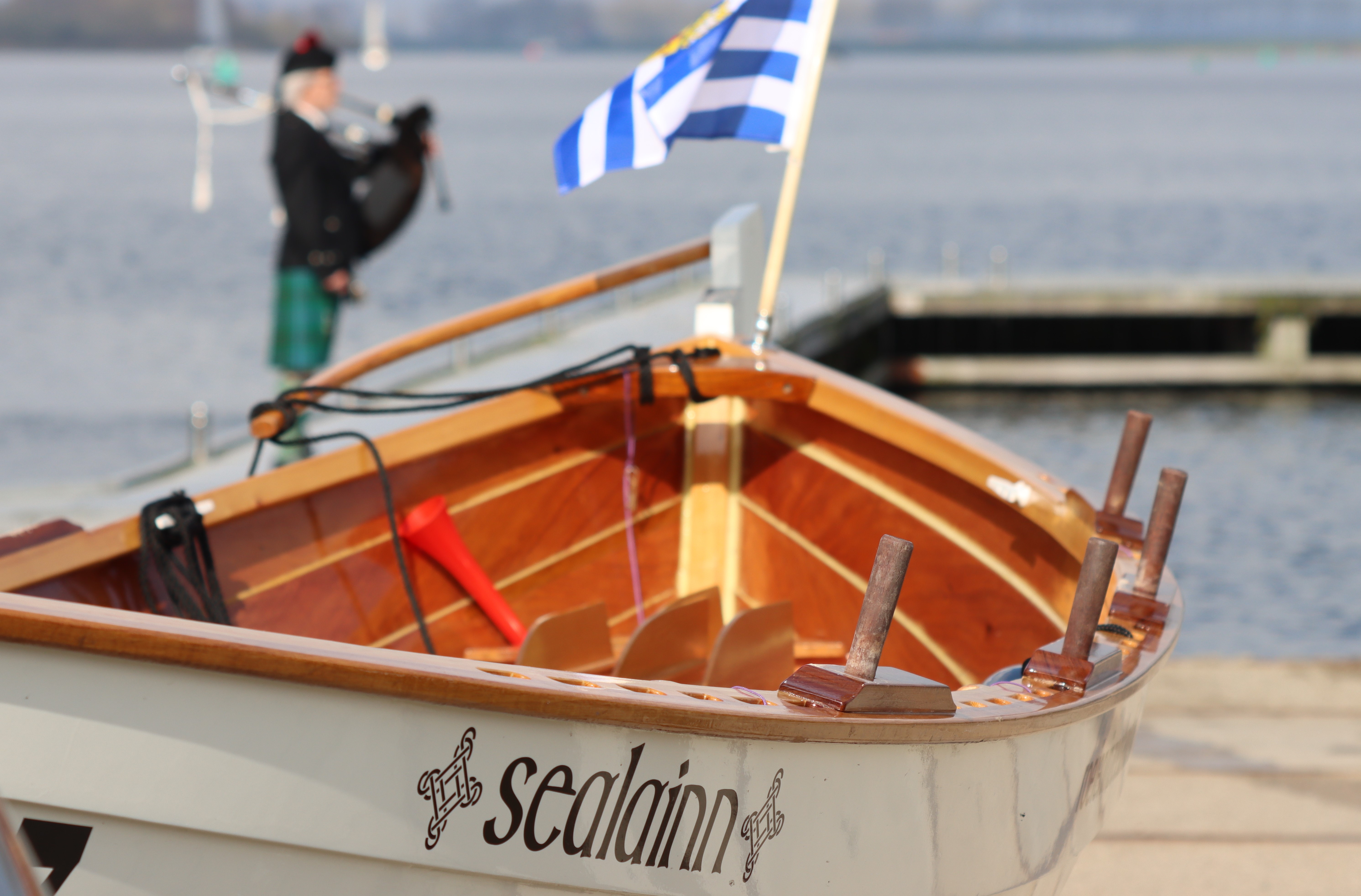 Op zaterdag 8 april is de 1e Zeeuwse St Ayles Skiff gedoopt. Kees van Vugt, voorzitter van de Dutch St Ayles Rowing Association, was afgereisd naar Zeeland om de doopplechtigheid te begeleiden. Na de traditionele doop – met Schotse Whisky uit een Quaich (vriendschapsschaal) - onthulde voorzitter Kees Verweel de naam van de boot; Sealainn. Dit is de Schots-Keltische schrijfwijze voor Zeeland, een directe verwijzing naar onze mooie provincie! Vervolgens dronken alle teamleden uit dezelfde Quaich een slok Whisky, waarmee de vriendschap werd bezegeld. De doopplechtigheid werd omlijst door doedelzakmuziek gespeeld door Frans Oosthoek uit Goes.